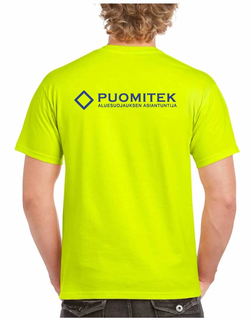 Gildan ultra cotton Huomioväri t-paita Puomitek logolla.