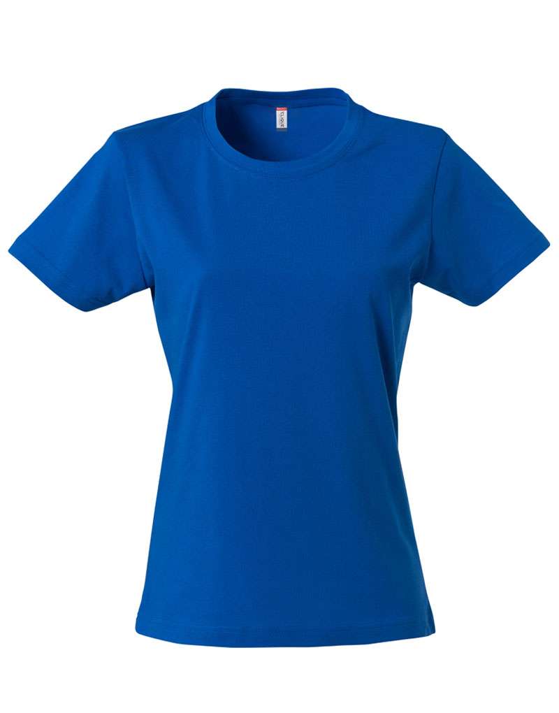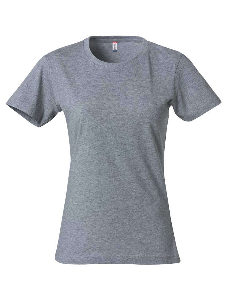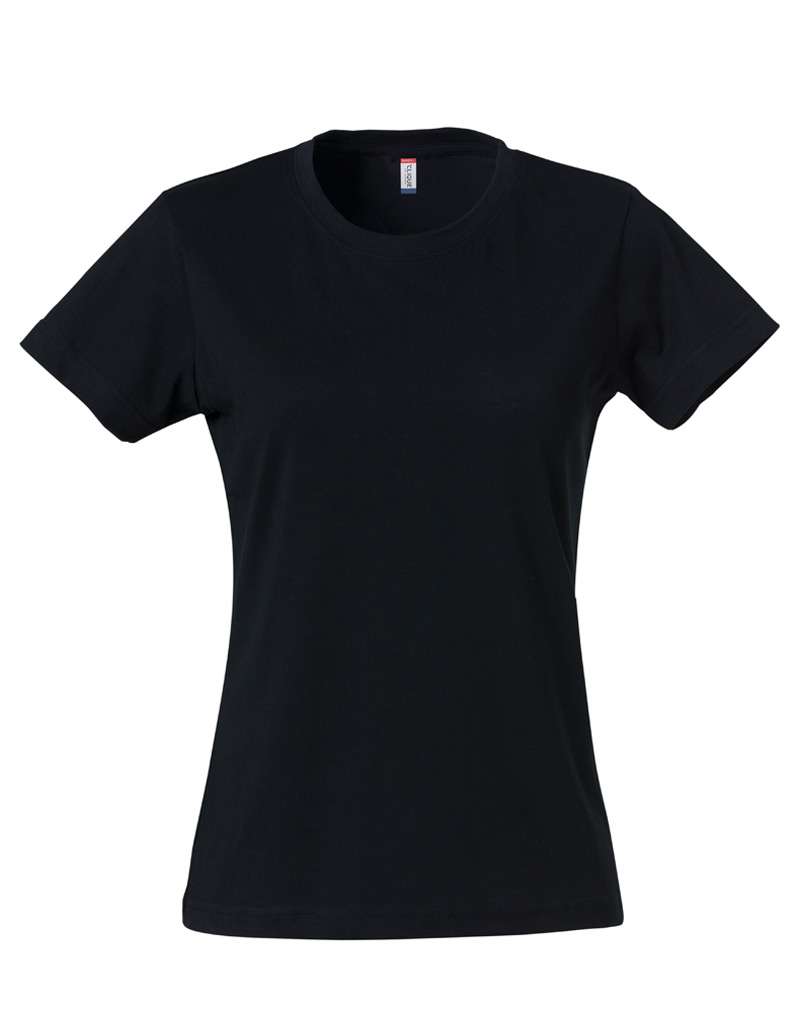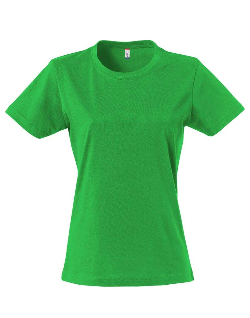 Naisten T-paita, muotoonleikattu kapeampi malli. Teipattu niskasauma, joustava kaulusresori sekä käännetty olkasauma.
