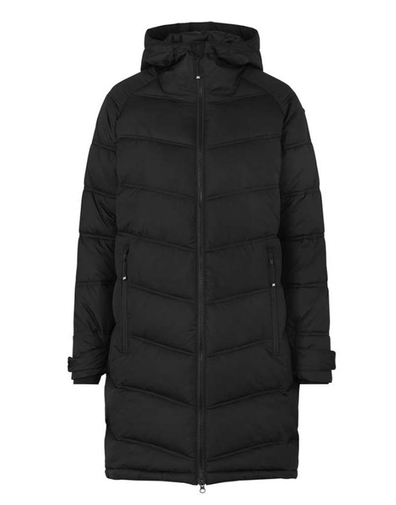 Säädettävä huppu, korkea kaulus ja tarralla kiristettävät hihansuut pitävät tuulen ja sateen loitolla.